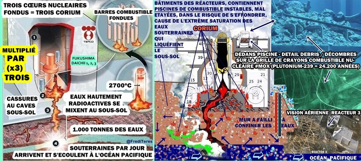 •   3 Datos inquietantes en Fukushima que el Gobierno está encubriendo. 1- Una de las mentiras más absurdas presentadas por TEPCO es que en Fukushima no hay nada de qué preocuparse. 2- Las mediciones publicadas se han basado casi exclusivamente en la información proporcionada por TEPCO - una empresa que ha mentido a la población del mundo en un gran manera, hasta que TEPCO se vio obligada a reconocer que los niveles de radiación que publican son mucho menores que la realidad. 3-Casi todo el cesio radiactivo fue drenado en el Océano Pacífico. Se estima que alrededor del 20% cayó en tierra japonesa, el 2% fuera del país, y se cree que un 78% restante ha entrado en el Océano Pacífico: http://naturalsociety.com/3-disturbing-fukushima-facts-government-covering/