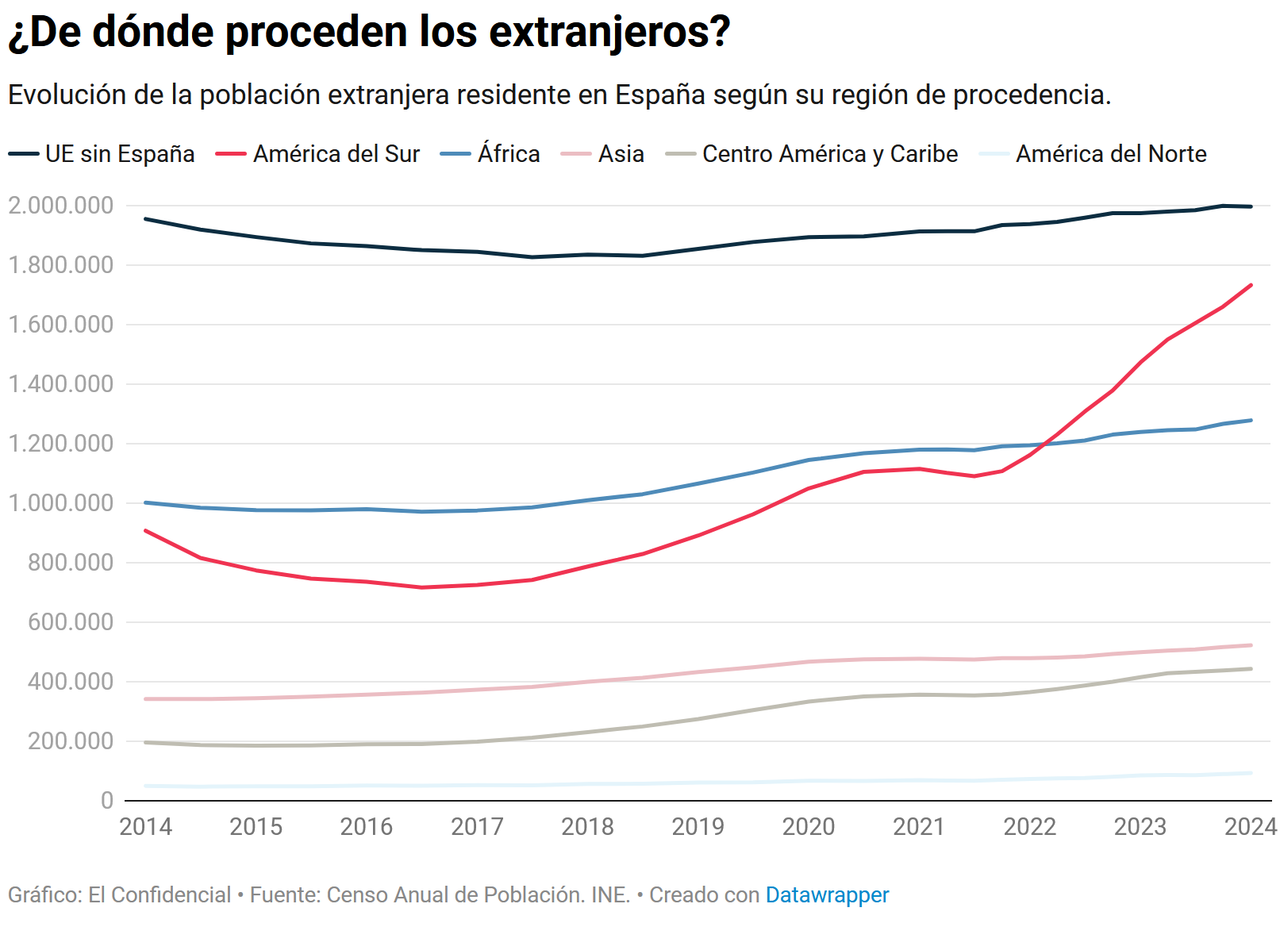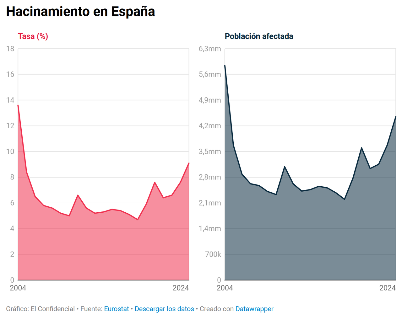 EL 70% DE LA NUEVA DEMANDALa nueva 'subprime' de la vivienda: el motor de la demanda son inmigrantes sin recursosUno de los principales argumentos para refutar que haya una burbuja en la vivienda es apelar a la fortaleza de la demanda. El problema es que esta nutre de población inmigrante de bajos recursosVista panorámica de la ciudad de Málaga. (EFE/Jorge Zapata)Uno de los argumentos más repetidos para espantar los fantasmas de la burbuja y defender la solidez de los actuales precios de la vivienda es la fuerte demanda que hay, y que seguirá habiendo en los próximos años, por el incremento de la población.Efectivamente, en la última década, el número de residentes en España ha aumentado en 2,12 millones de personas, lo que unido a la escasa construcción de casas desde el estallido de la crisis subprime de 2008, ha provocado un enorme desequilibrio entre oferta y demanda.El Banco de España, por ejemplo, estima entre 550.000 y 600.000 el número de hogares que hacen falta para poder acoger todo el crecimiento poblacional que se estima, una falla que, para los defensores de la 'no burbuja', justifica el disparado crecimiento del precio de la vivienda visto en los últimos años.El problema es la sostenibilidad de esa demanda. Si se analiza el detalle de los países de origen del aumento poblacional entre 2014 y 2024, último ejercicio completo con datos definitivos del Instituto Nacional de Estadística (INE), se comprueba cómo más del 70% corresponde a inmigrantes procedentes de zonas con pocos recursos. Más de 1,5 millones de personas, de esos 2,12 millones en que se ha incrementado la población residente en nuestro país en la última década, proceden de diferentes zonas de África, Asia, Centroamérica, Caribe y Sudamérica.Destaca Colombia, país de procedencia de 578.447 ciudadanos, pero que hace una década apenas aportaba 172.022 residentes, es decir, su peso ha crecido en más de 400.000 habitantes. Otro caso significativo es Venezuela, que ha pasado de 42.689 a 325.254 personas.Marruecos es, en términos absolutos, el país que más residentes tiene en España (920.693), pero su crecimiento en la última década ha sido muy inferior al de los dos anteriores, ya que el incremento es de 184.907 personas. Un número similar, 127.659, es el aumento del número de ucranianos, que suman ya 210.000 ciudadanos en España. Estos números indican que la sostenibilidad de esa creciente demanda sobre la que se justifica el auge del precio de la vivienda tiene un claro talón de Aquiles, al tratarse en su mayor parte de población sin grandes recursos. Una capacidad de pago que choca directamente con el incremento de precios.En la crisis subprime ocurrió algo parecido: la burbuja se alimentó con la venta de casas a personas con bajos recursos. Fueron las famosas hipotecas basura. Ahora, a diferencia de entonces, el férreo control de los bancos centrales está frenando la concesión de esos préstamos, pero la base del mercado es una demanda muy parecida.Hacinamiento como en la burbujaComo en la crisis subprime, el grueso del crecimiento poblacional son personas con bajos recursos que necesitan un lugar donde alojarse. Ante el cierre crediticio, su destino es el alquiler, y ante el disparado precio de las rentas, cada vez hay más pisos patera y alquiler de habitaciones. ¿La consecuencia? España está ya en niveles de hacinamiento similares a los previos al estallido de la burbuja.Según los datos de Eurostat, el 9,1% de la población de España vivía en condiciones de hacinamiento en 2024, la mayor tasa desde 2004, cuando marcó el 13,6%. Aunque pueda parecer un porcentaje reducido, se traduce en un total de 4,4 millones de personas. Otro número que ayuda a ver la debilidad de esa creciente demanda es analizar qué peso tienen los ciudadanos de países más privilegiados sobre el total de los residentes y, por tanto, qué porcentaje de la demanda de vivienda se puede poner sobre sus espaldas.Los españoles apenas hemos crecido en 298.000 personas. En esta cifra, además, se incluye un significativo número de nacionalizados, ya que desde 2017 el crecimiento vegetativo en la piel de toro es negativo, al haber más fallecimientos que nacimientos.Tampoco mueven el peso de la balanza los países de la Unión Europea, incluido Reino Unido, ya que solo han incrementado su número en 41.577 personas desde el año 2014, periodo que incluye tanto la era preBrexit como postBrexit. Mención especial merecen los países de Norteamérica: Canadá, Estados Unidos y México. A pesar de su protagonismo en el mundo inversor en los últimos años, por ser origen de numerosos fondos y empresarios del ramo, apenas aportan ciudadanos a la demanda real de hogares. Entre los tres, apenas suman 93.465 personas y en una década su número ha crecido en 43.581 residentes.Dentro de este colectivo, lo más llamativo resulta comprobar el creciente peso de los estadounidenses, que suman ya 50.623 ciudadanos viviendo establemente en España, el doble que hace una década, cifra superior a la registrada por mexicanos (36.067) y canadienses (6.775).La brecha social que está provocando ya el elevado precio de la vivienda es uno de los puntos sobre los que puso el foco Cáritas en su IX Informe sobre exclusión y desarrollo social. En él, advertía de que estaba condicionando la estructura social y siendo ya un factor de exclusión más importante incluso que los ingresos.La situación llega al extremo de que el 10% de la población más rica concentra el 54% del patrimonio del país, mientras que el 50% inferior apenas posee el 7%. Es la nueva demanda subprime.