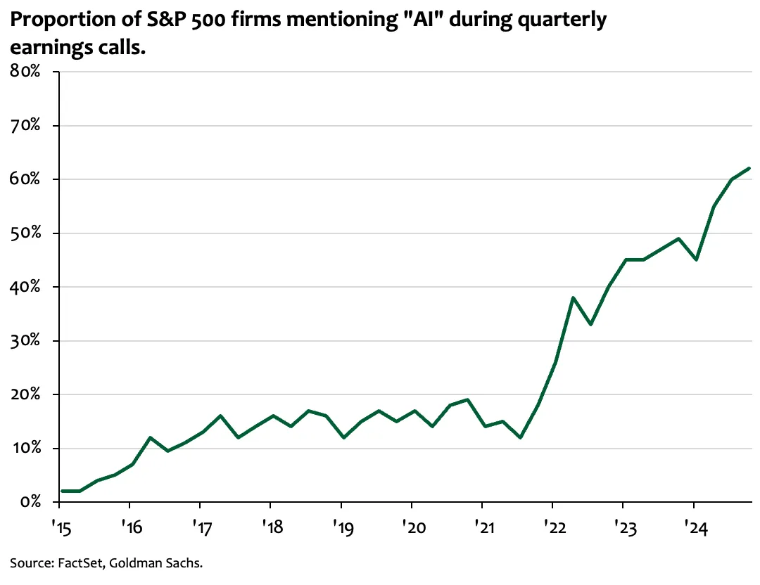 Why Nvidia Earnings Beat Might Be Bad NewsSome lessons from the 1800s gold rushDuring the California Gold Rush, most miners walked away with little more than sore backs and empty pans, yet a handful of shrewd entrepreneurs made fortunes by serving those chasing the dream. Samuel Brannan was a local store owner who grew rich by selling picks and shovels to eager prospectors at often extortionate mark-ups. Similarly, Levi Strauss (the founder of Levi Jeans) found success supplying tough, reliable clothing to the mining community. Meanwhile, Henry Wells and William Fargo made their initial fortune by offering banking and transport to a booming frontier market and later went on to found the giant Wells & Fargo bank.The reason I want to bring up these stories is that during gold rushes, the money is rarely made from those maniacally panning for gold. Instead, it’s made by the shrewd businesses – tool sellers, clothing suppliers, banks - who offered the services to support the miners trying to strike gold. Fast-forward to this week and we are seeing a similar pattern play out in financial markets in the latest gold rush – the rise of AI.Nvidia: The Modern Day Tool-MakerHeading into this week, attention was firmly fixed on Nvidia’s earnings report. Trading activity surged, and options markets were pricing in a potential swing of about 6.4% in either direction - roughly $280 billion of market value at stake depending on how the numbers landed.The results did not disappoint. Nvidia posted $57 billion in revenue, up 62% from the same period last year and about $2 billion ahead of expectations. Its data-centre division accounted for the bulk of this, bringing in $51.2 billion. Management also issued an upbeat outlook, guiding investors toward $65 billion next quarter, once again above analyst forecasts.Initially, the market cheered: Nvidia’s share price jumped around 5% as investors digested the news. But by the end of the week, the momentum had faded and the stock closed below its pre-earnings level. How did such strong results turn into a slump?As Rasmus Tarp Ulveman pointed out in a thoughtful LinkedIn post, we need to be cautious about judging the state of AI by Nvidia’s share price. Nvidia is the modern-day tool-maker - the company producing the semiconductors, the “picks and shovels”, that other firms use to dig for AI gold. But it is not the one actually sifting through the mud for the valuable applications themselves. A booming demand for GPUs tells us that many companies are trying to strike AI gold, not that they’ve already found it.Why Nvidia’s earnings report might be bad newsIn fact, the sheer scale of Nvidia’s earnings surge might even be a troubling sign. The chart below shows that 62% of S&P 500 firms are now mentioning AI on their earnings calls. That suggests firms are clearly hunting for AI gold, pouring money into experimentation. This enthusiasm is evident in Nvidia’s results - but it also hints at a frenzy of digging rather than a flurry of actual discoveries.That surge in tool-buying masks a more uncomfortable reality: there is still a shortage of profitable, scalable AI projects. Companies are investing heavily in the infrastructure - the picks, shovels, and GPUs - yet the commercial payoffs remain uncertain. Today’s AI systems are impressive, and their potential economic value is easy to imagine, but the harder question is how much of that value companies will actually be able to retain. Investors are assuming rapid adoption and high-margin revenue, even though the business models needed to achieve that are unproven and very expensive to run.This creates a widening gap between what the technology can theoretically do and what firms can profitably deliver - a gap that has undone many previous booms when early optimism ran ahead of commercial reality. And this is why markets sold off after Nvidia’s earnings: not because the numbers were bad, but because they were so strong that they reinforced worries of an AI bubble - one fuelled by enthusiastic spending rather than profitable discoveries.