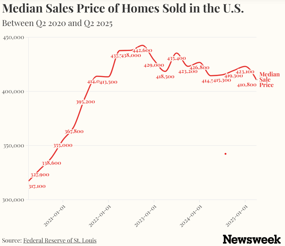 Price Correction ‘Worse Than 2008’ Coming To US Housing Market—AnalystThe U.S. housing market is going to face a price correction “worse than 2008,” according to housing analyst Melody Wright, who expects home prices to drop in half starting as soon as next year.“I see it happening over several years with the potential to deteriorate faster than in the last cycle,” she told Newsweek. “For instance, prices did not bottom until 2012 during the last cycle. I believe we could get started in earnest next year on the price decline and see a rather large drop historically speaking but still think it could take several years to bottom.”What Is Happening in the Housing Market?Rising inventory and dwindling demand have brought down home prices in many U.S. metropolitan areas this year, especially in those markets in the Sunbelt and the South which became overheated between 2020 and 2022. At the national level, the vertiginous price growth that characterized the pandemic years has also slowed to a grind, with the median sale price of a home in October only 1.2 percent higher than a year ago, according to Redfin, at $439,701According to a new report from Zillow, 53 percent of all U.S. homes lost value over the past 12 months—the most since 2012. While affordability has slightly improved, however, millions of Americans are still being kept on the sidelines of the housing market by higher home prices, property taxes, and home insurance premiums, as well as still-elevated borrowing costs.“I think…we’re going to correct all the way to a point where household median income matches the home price, the median home price. And so that is going to be worse than 2008. This could devolve a lot faster than last time,” Wright said during an interview with Adam Taggart, host of Thoughtful Money, published on YouTube.Wright told Taggart that, while it is hard to say whether home prices at the national level have fallen this year, “you can definitely see the deceleration happening.”It has been a difficult year for the U.S. housing market. While price growth has stalled, home prices remain much higher than they were before the pandemic in much of the country. In April, what Wright calls “the tariff terror” caused many buyers to have “cold feet” and delay home purchases while waiting to see what the impact of President Donald Trump’s policies would be on the U.S. economy.The only transactions that continued happening in the U.S. market at volume this spring and summer, she said, were for higher-priced homes. “You have this bifurcated housing market, but the majority of folks transacting are in these upper tiers, so your median [home price] is going to be higher,” Wright said.“However, what I’ve been seeing over the last three months, and this is—I get into the dirty dirty details—underneath the covers, that $100,000-$250,000 sales price, we are starting to see incremental increases in sales in that category,” she added.“And so as it continues, it will start to drag the median down. It’s happening already and that’s where we’re seeing the deceleration,” Wright said, adding that we are going to end the year with “flat” home price growth.Steeper cuts will come later, she warned. “It’s going to be worse,” she said, when asked to make a prediction about 2026. What Does Wright Expect To Happen Next Year?Wright is expecting a big drop in home prices next year, as investors who are not making money from their properties withdraw from the market.“What happened last time was, we were on our way down to where household median income would actually match home median prices, but we never got there because Wall Street came in to buy those [homes],” Wright said. “But now they’re crying on TV,” she said, adding that some investors are claiming they were asked by government-backed mortgage agencies to intervene and purchase those properties. “They’re going to start crying a lot louder soon and say, ‘Hey, we saved you, government.’ And so, who’s the buyer now?” Wright said she fears the government might be forced to step in as "the buyer of last resort."An aerial view of new residential housing under construction at a planned community on September 17, 2025, in Fontana, California (Mario Tama/Getty Images)Another fear Wright has is about the quality of the homes that investors are likely going to be leaving behind. “In the last cycle, remember how many all-cash buyers we’ve had? When these are not on a bank’s balance sheet, there’s nobody that’s going to be cutting the grass, there’s nobody that’s going to be winterizing that home, taking care of the mold problem,” she added.“And so I think we could see this kind of devolve into chaos a lot faster than we did last time as many investors abandon these properties.”Wright then said that next year home prices might correct to the point where they match the median household income. In 2024, according to data from the U.S. Census, that median was $83,730.That is going to be a price decline “near your 50 percent,” she said. “And much greater in certain areas.”