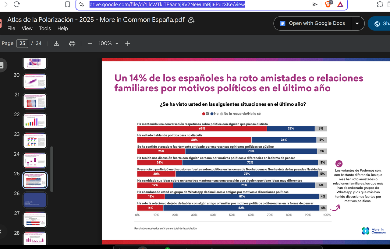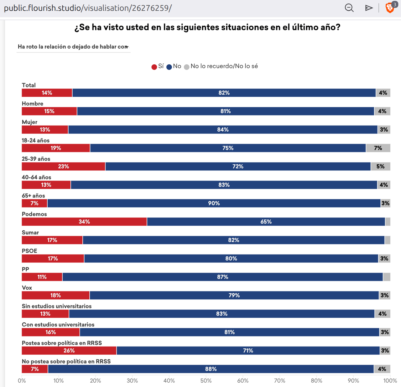 A mí esto me parece gravisimo. Polarización en España: casi tres de cada 10 encuestados que vota a Vox ha roto una relación este año por una discusión política https://share.google/5wA121nFlYWr4PQo8