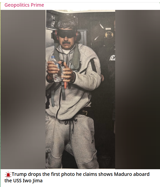 Cita de: sudden and sharp en Enero 03, 2026, 13:03:41 pmA Maduro le han entregado los "suyos"...Entregado a la policía en la comisaría de la Casa Blanca. La posición actual de EEUU es ridícula.Pretenden juzgar al dirigente de otro país, acusándolo de no-se-qué (delito de ser aliado de Putin dicen por ahí... )No entiendo nada. Quién lo va a juzgar.¿Un tribunal militar?¿Un tribunal federal?¿El congreso?Y el partido demócrata que representa al 50% de la población ¿en que posición queda?Esto es un sinvivir!!!