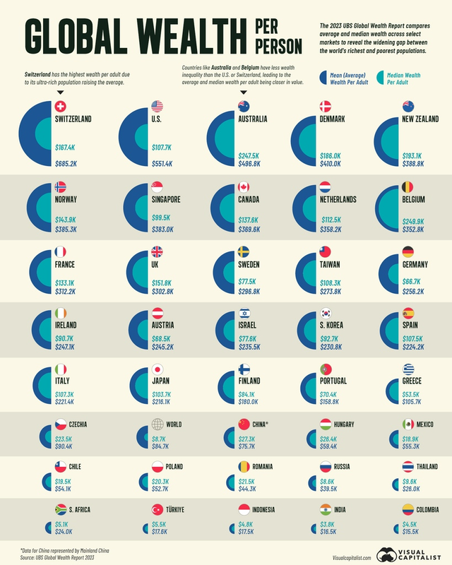 España tiene casi el mismo patrimonio por persona mediano que tiene EEUU