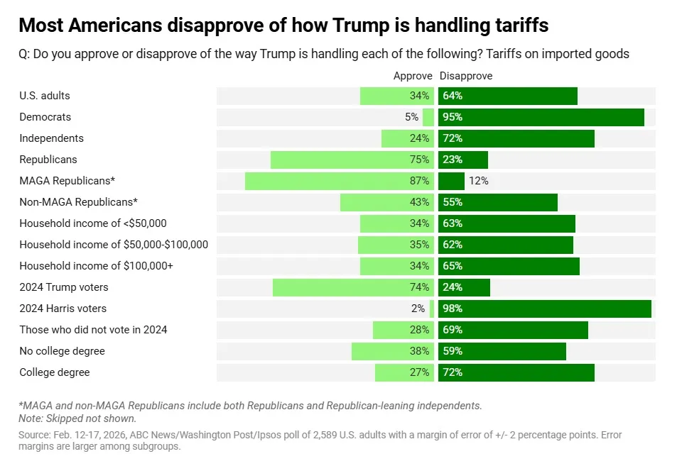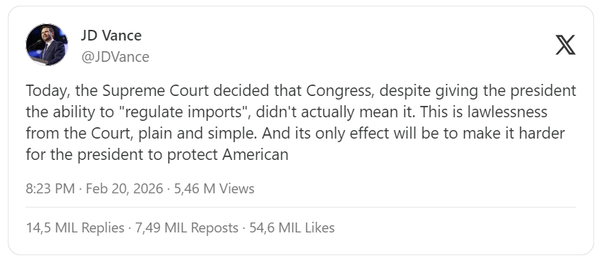 [T]he Supreme Court ruled that the unilaterally imposed [tariffs] were illegal…No longer does Trump have a tariff “on/off” switch…Future tariffs will need to be imposed by lengthy, more technical trade authorities — or through Congress…In a 6-3 ruling, the Supreme Court said that affirming Trump's use of the International Emergency Economic Powers Act (IEEPA) would "represent a transformative expansion of the President's authority over tariff policy."…Chief Justice John Roberts said that IEEPA does not authorize the president to impose tariffs because the Constitution grants Congress — and only Congress — the power to levy taxes and duties.